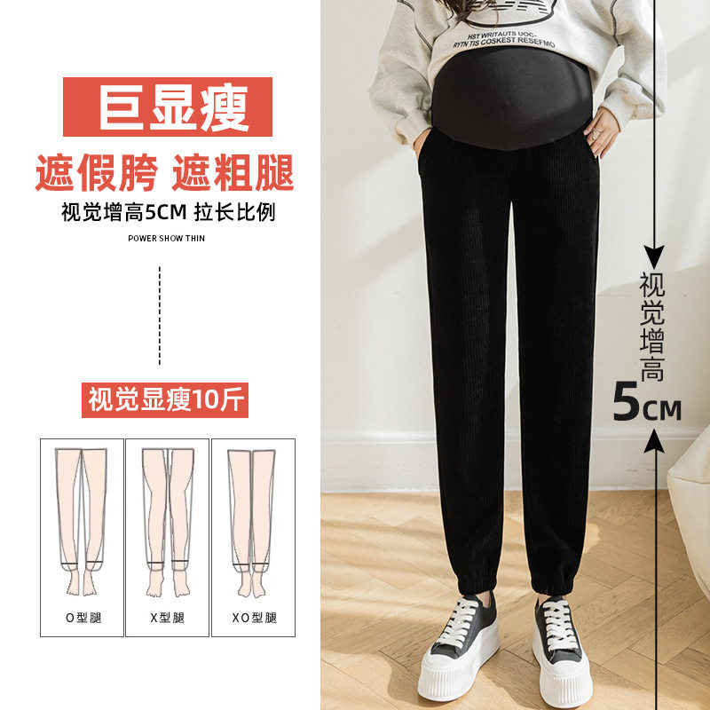 2021 Autumn Winter New Pregnant Woman Inner Hitch Pants Plus Thick and thin down casual pants Belly Wearing slim 90% Pants