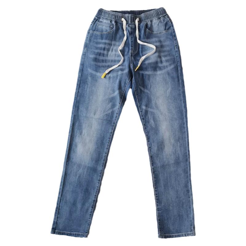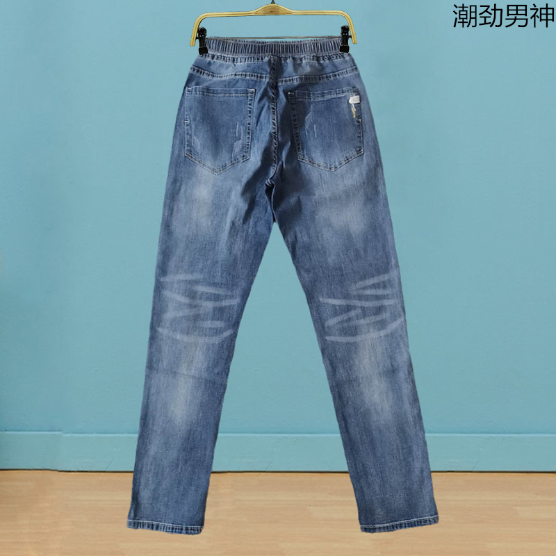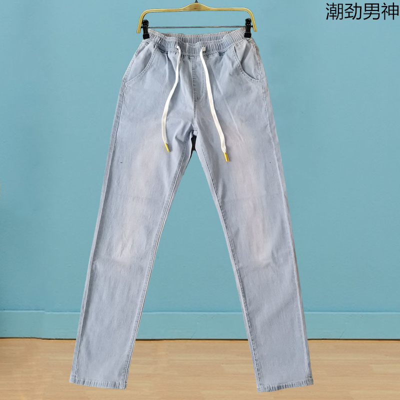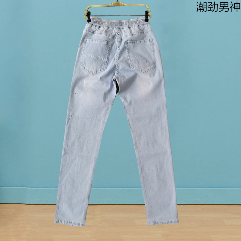New jeans in autumn winter men tight belt teenager to fix small foot elastic recreational straight tube student trousers