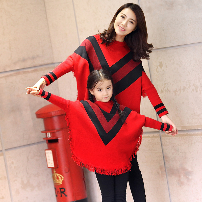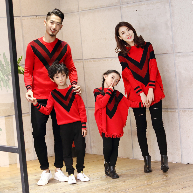 Korean parent-child clothing autumn clothing trendy family clothing mother and child clothing mother and daughter autumn and winter clothing couple clothing striped stretch knitted sweater