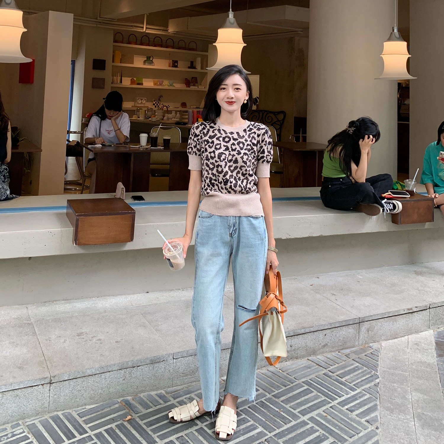 tinafairy early autumn new short section BAO WEN short-sleeved top women's popular temperament wool sweater this year