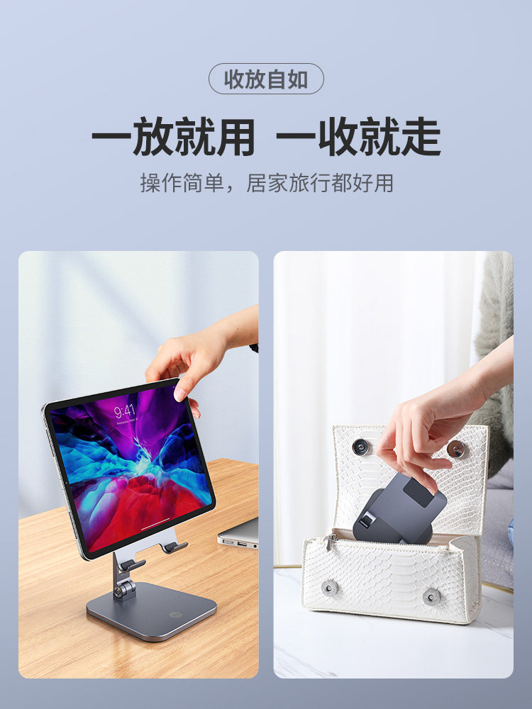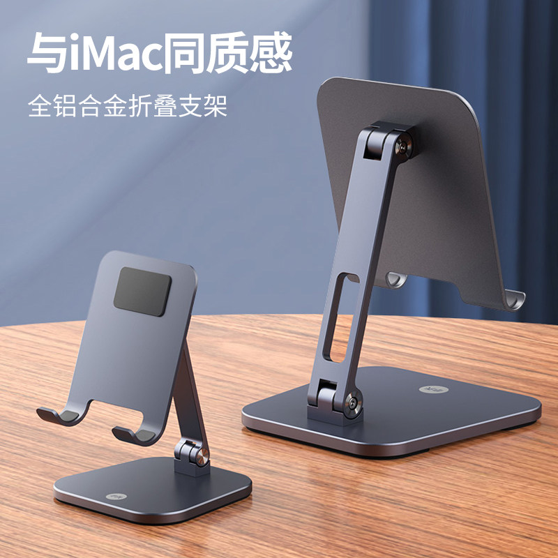 Mobile phone lazy desktop bracket universal tablet double-folding portable metal adjustable angle aluminum alloy support shelf anchor live chasing drama online class bedside fixed suitable for Huawei ipad
