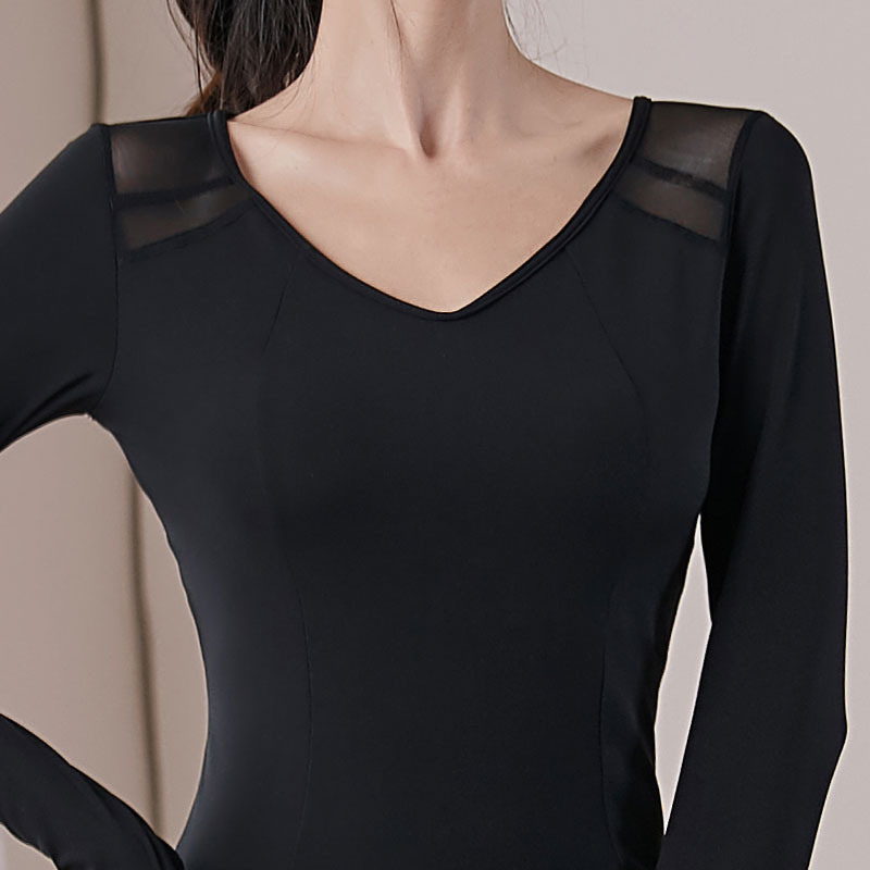 Women's yoga suit suit with chest pad and yarn beautiful back sexy thin top sleeve finger cuff design sense of running long sleeves
