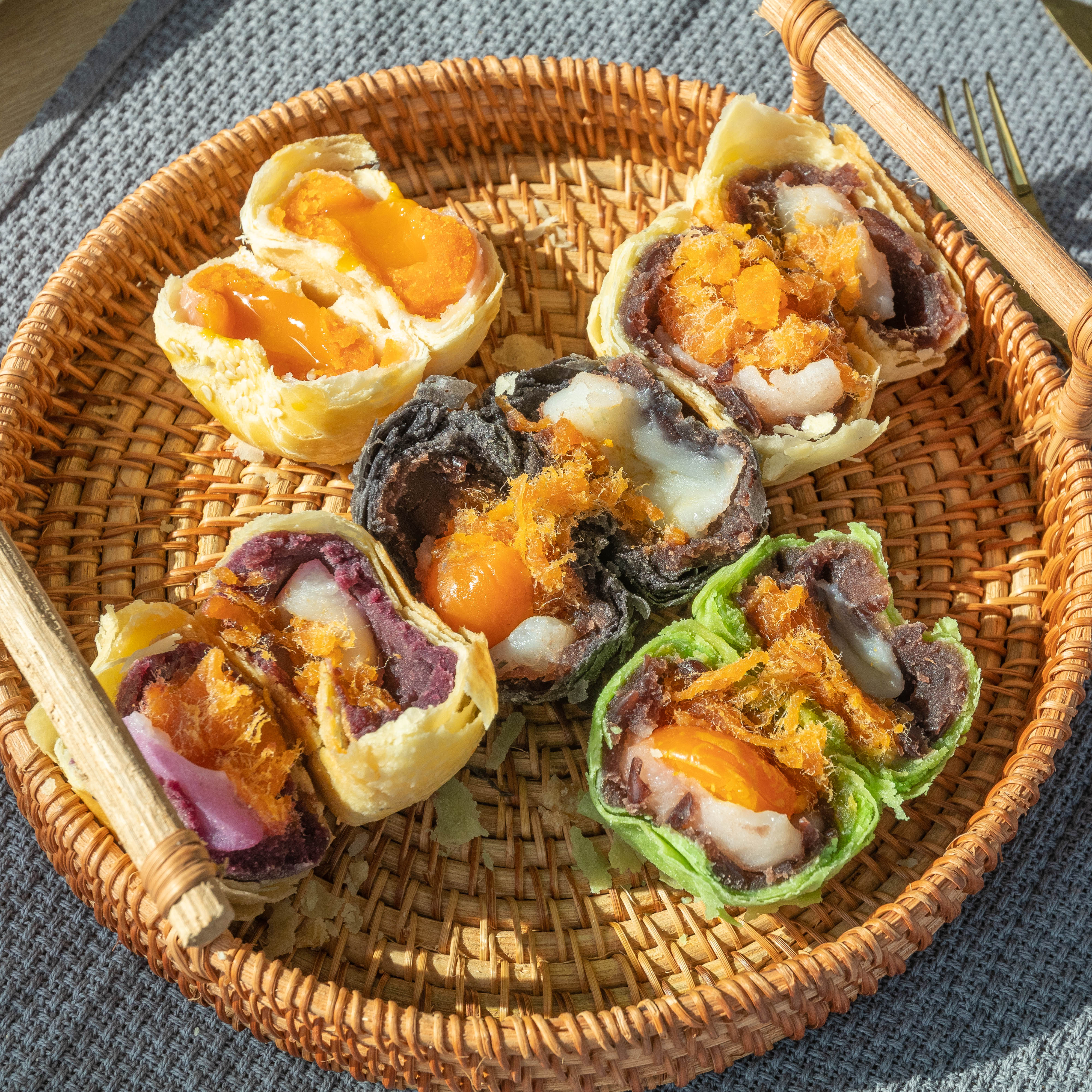 Red bean wheat flour white sugar salted duck egg yolk chicken floss Q heart filling
