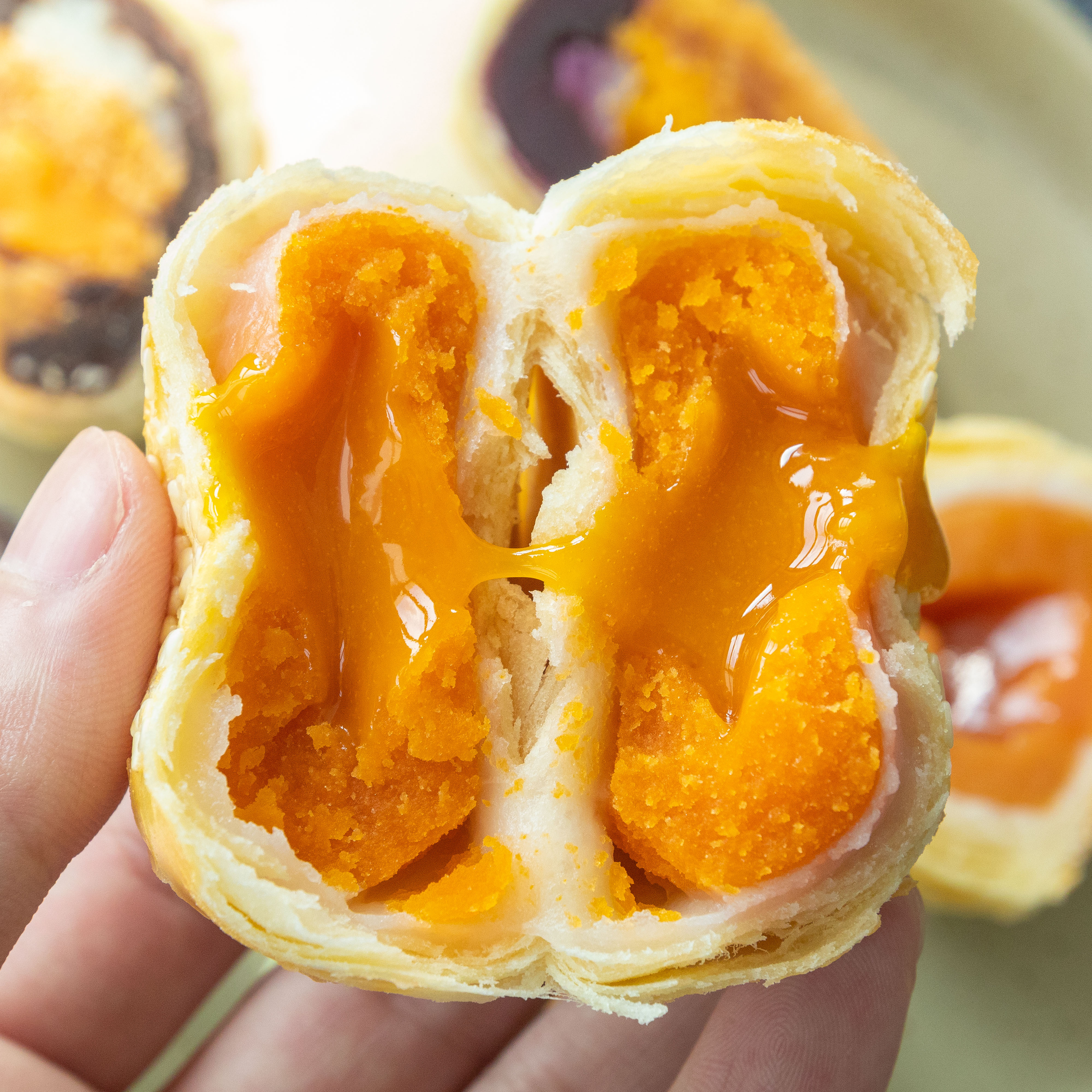 Taizhou stuffing egg yolk crisp mid-autumn moon cake gift box gift bean paste meringue creamy yellow moon cake snow Mei Niang cake