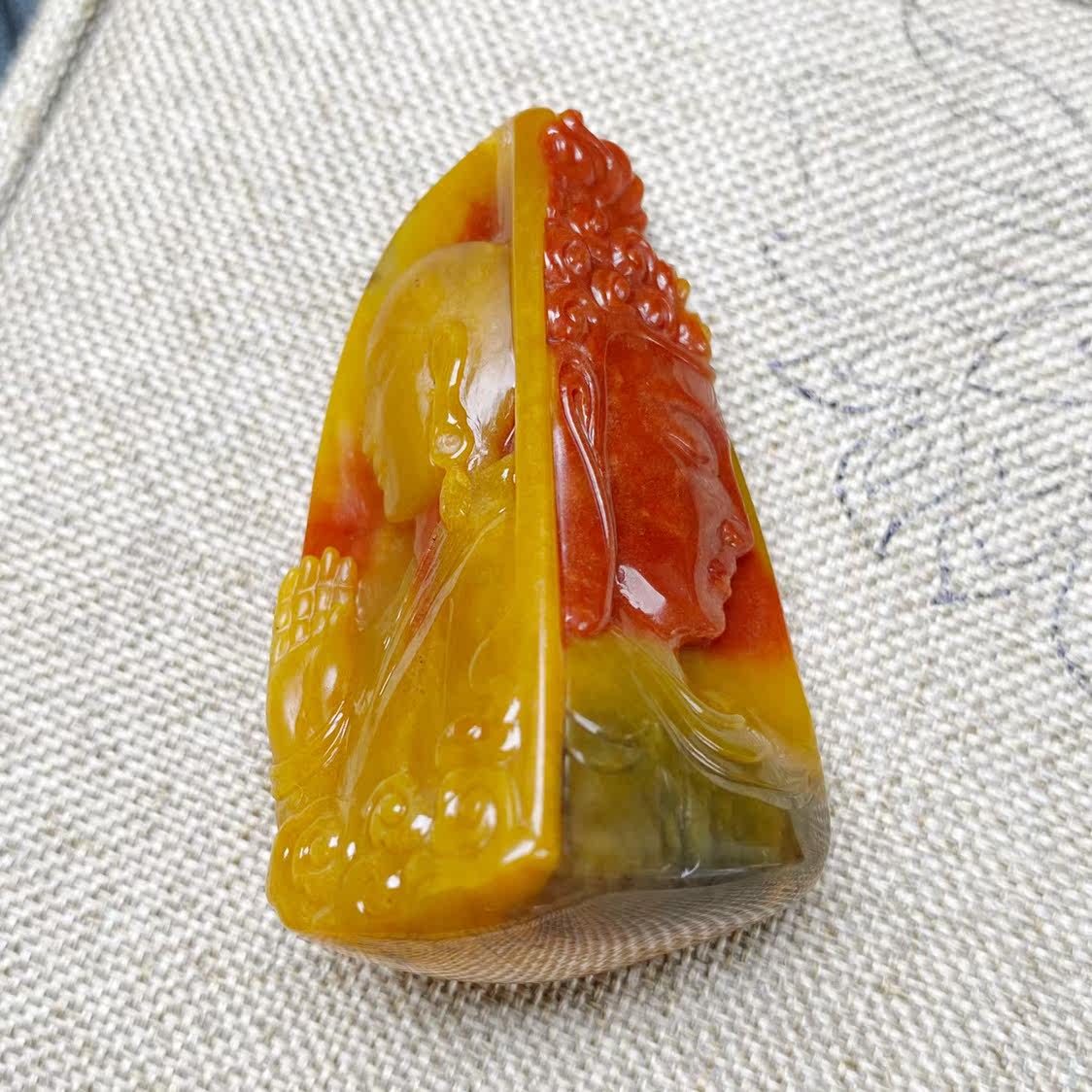 Natural Yunnan Huanglong Jade Guanyin Pendant Longling Grass Leather Material One Nian Pure and Free Jade Pendant