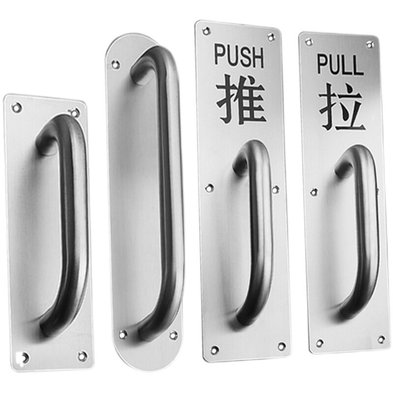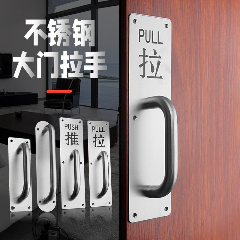 Thickened stainless steel door handle wooden door surface mounted handle push-pull board fire door access door handle push-pull with word
