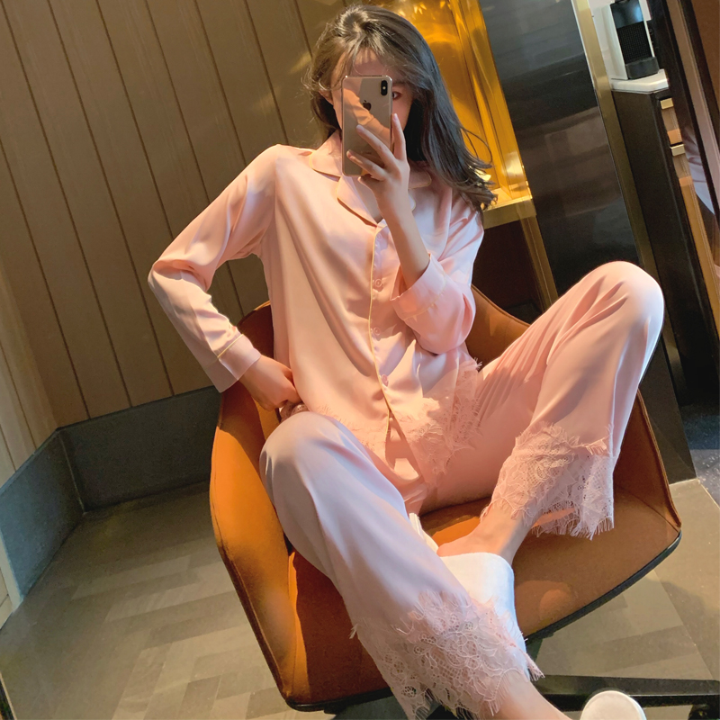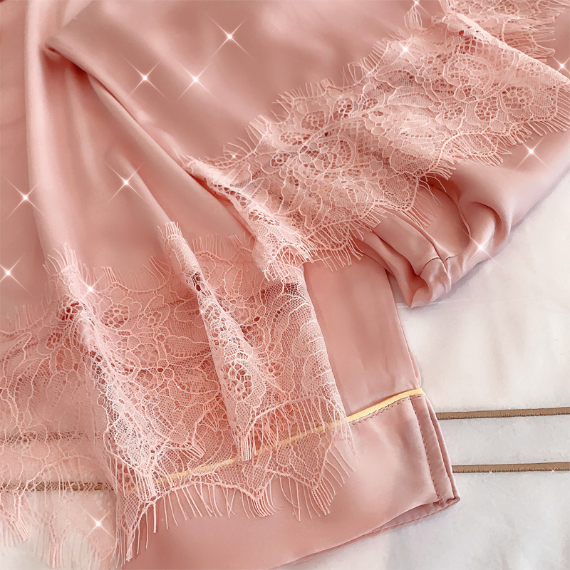 CHAO beautiful thing~fairy series silk sleeping yi female lace girl cardigan simple solid color home ju clothing suit