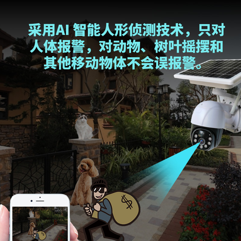 Package installation solar AI humanoid recognition alert alarm night vision full color outdoor outdoor high-definition surveillance camera