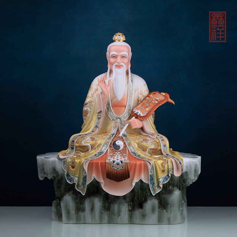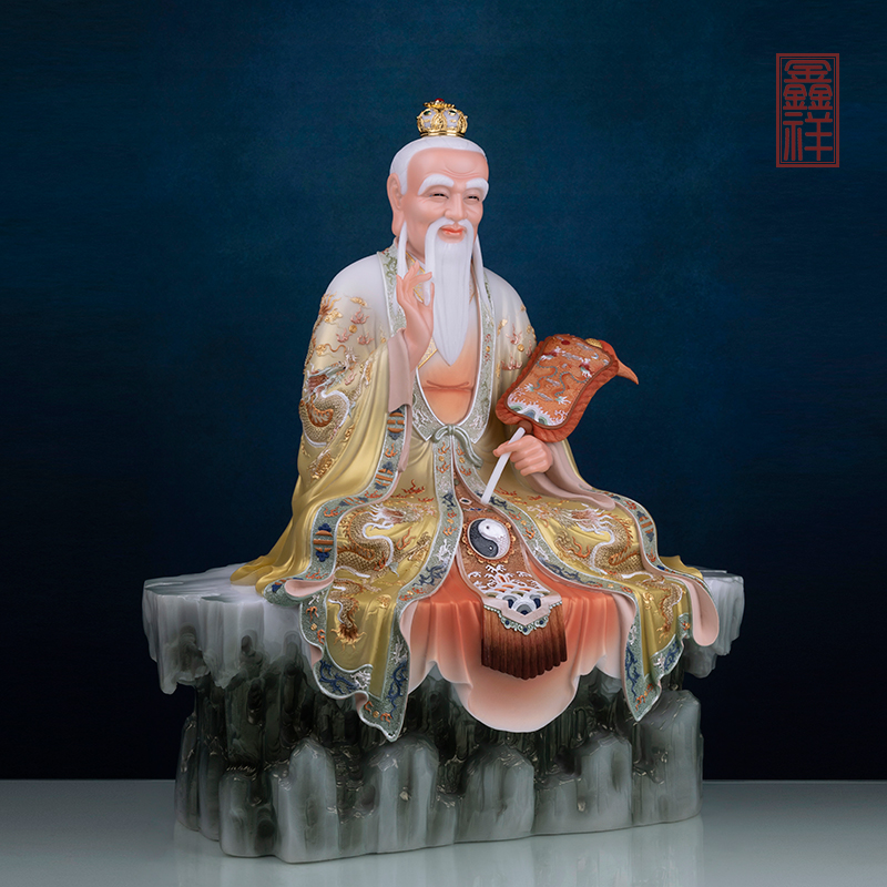 White marble Taishang Laojun Statue Taoist Jade Painted Patriarch to protect Ping An to attract money home offerings