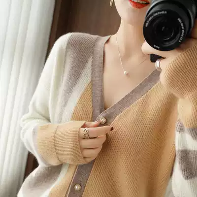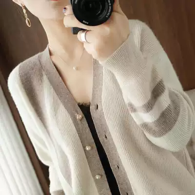 Color-color knit sweater cardigan women's 2021 Spring and Autumn New sweater coat women's outer play slim Joker coat