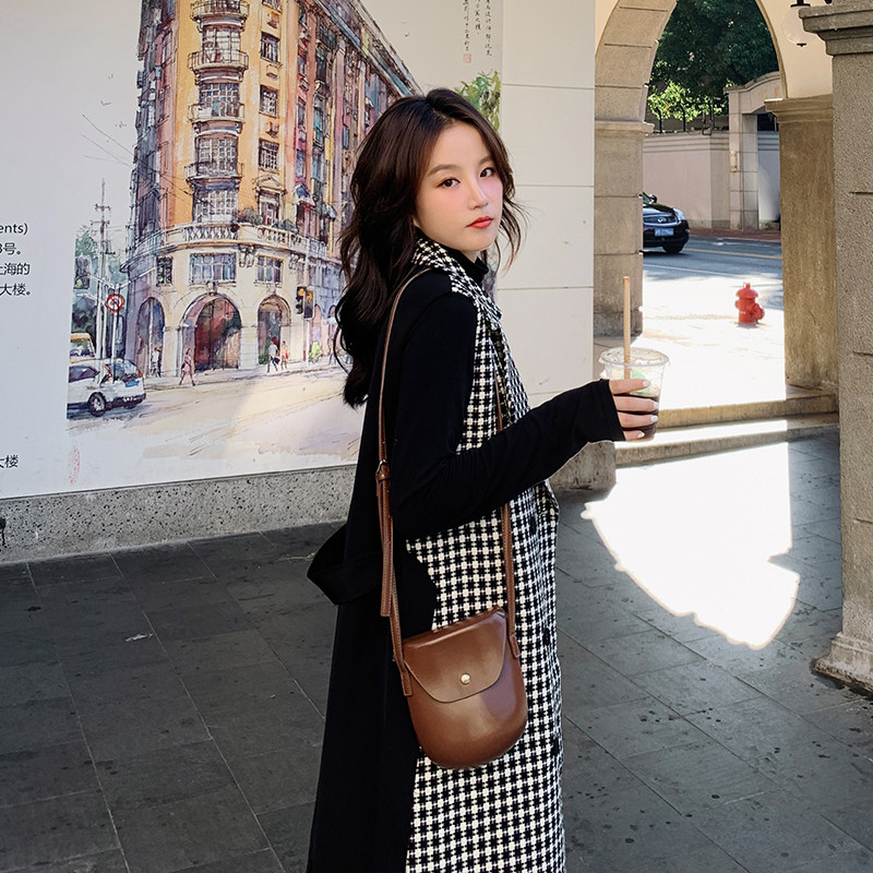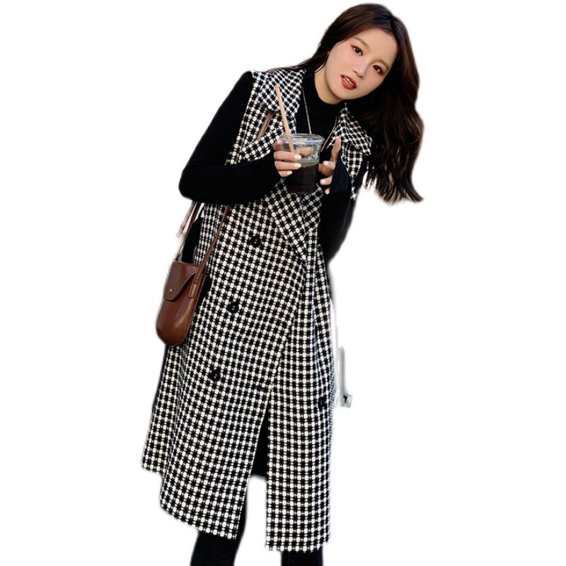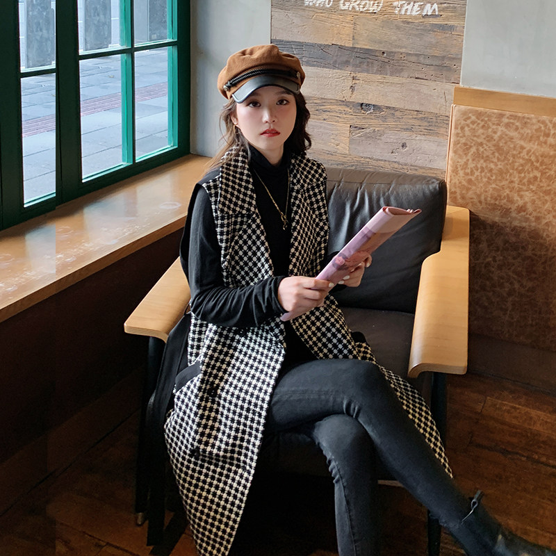 Thousand bird-style vest female spring and autumn with middle and long-form closing and shoulder retro-horse jacket tide