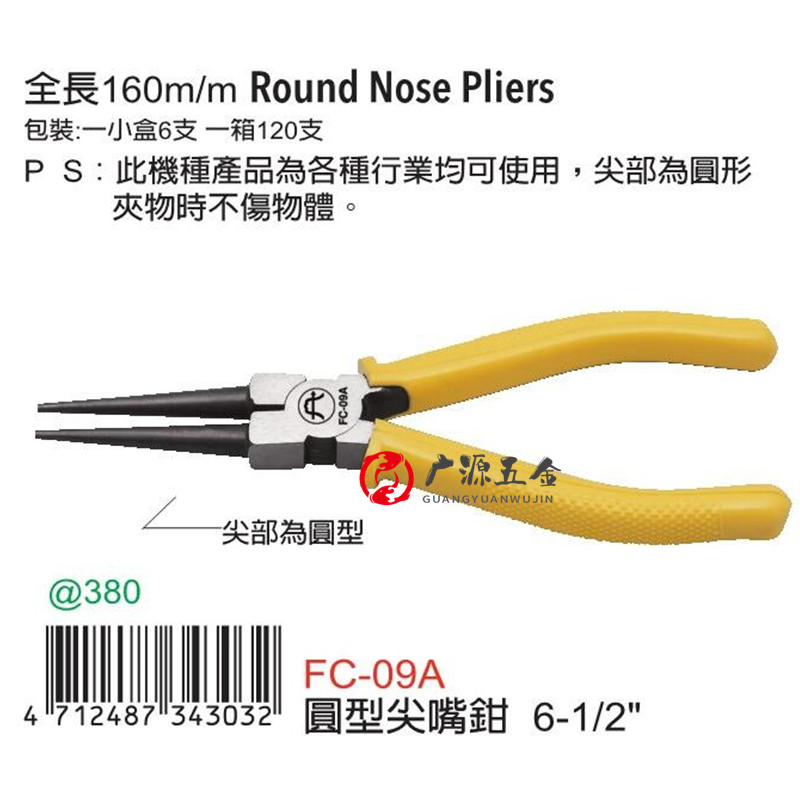 Taiwan FUJIYA Fuchia FC-09A FC-09 round sharp mouth pliers 5 inch toothless pointed clippers 6 inch pliers