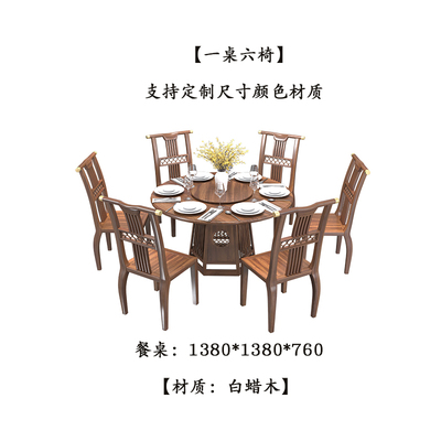 New Chinese electric dining table solid wood with turntable large round table dining table and chairs Combined modern hotel clubhouse furniture custom-made-Taobao