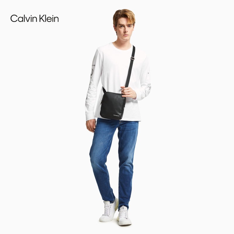 CK Jeans men's simple and fashionable zipper overlapping embossed LOGO adjustable shoulder strap messenger bag HH2773