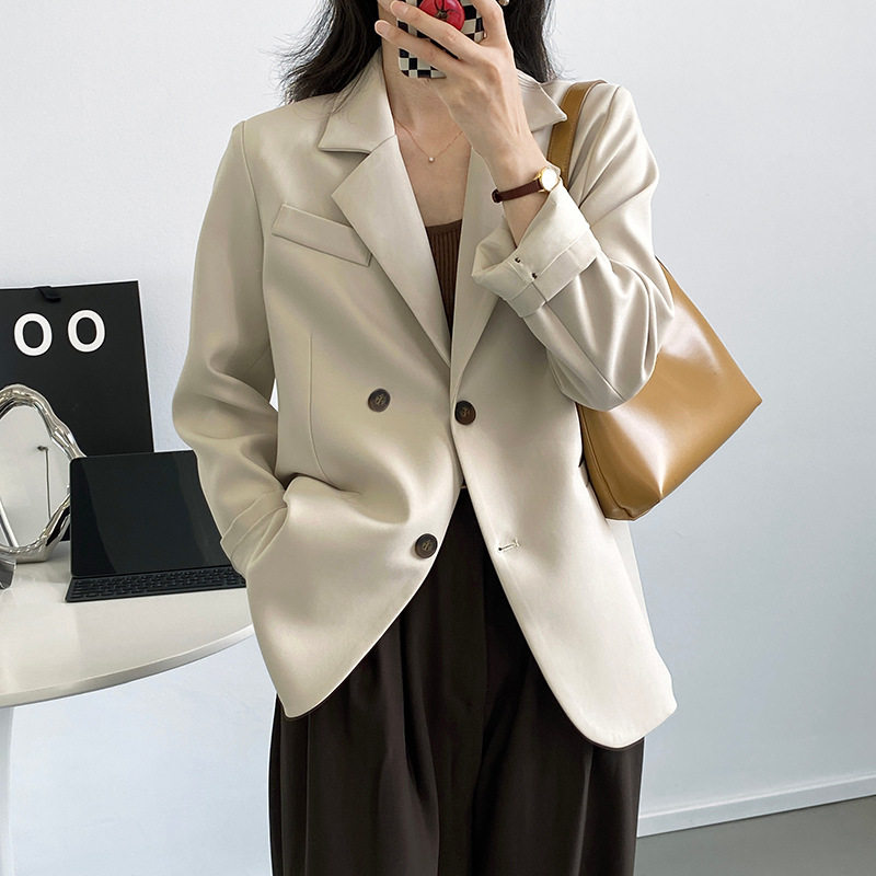 South Korean back open fork suit jacket woman outside lap 2022 spring autumn new loose casual temperament high-end little west suit