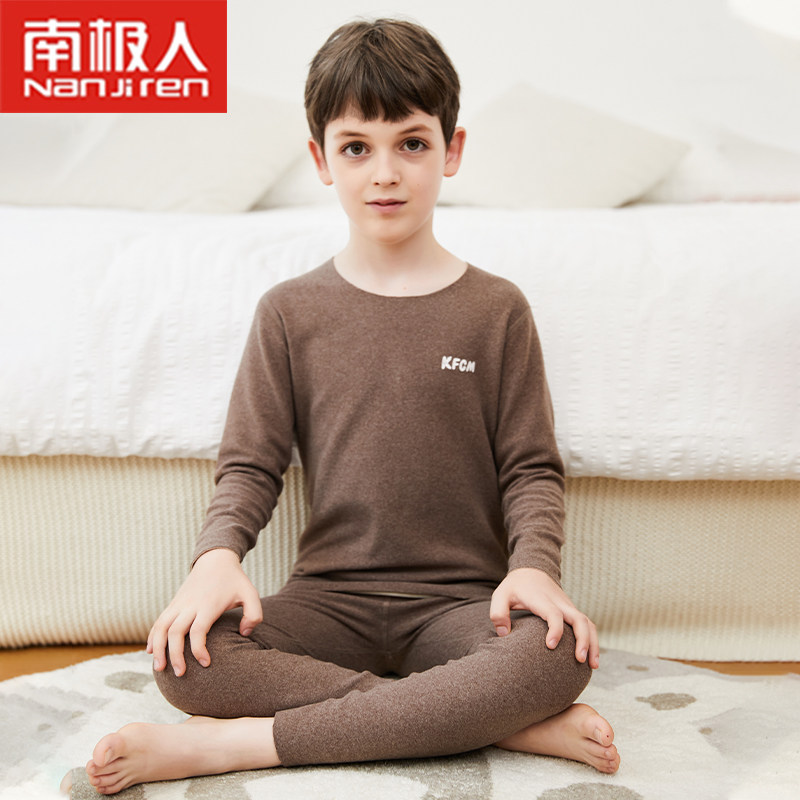 Children's thermal underwear set velvet boy plus velvet autumn clothes and autumn trousers spring and autumn unmarking winter thick medium and large children thin