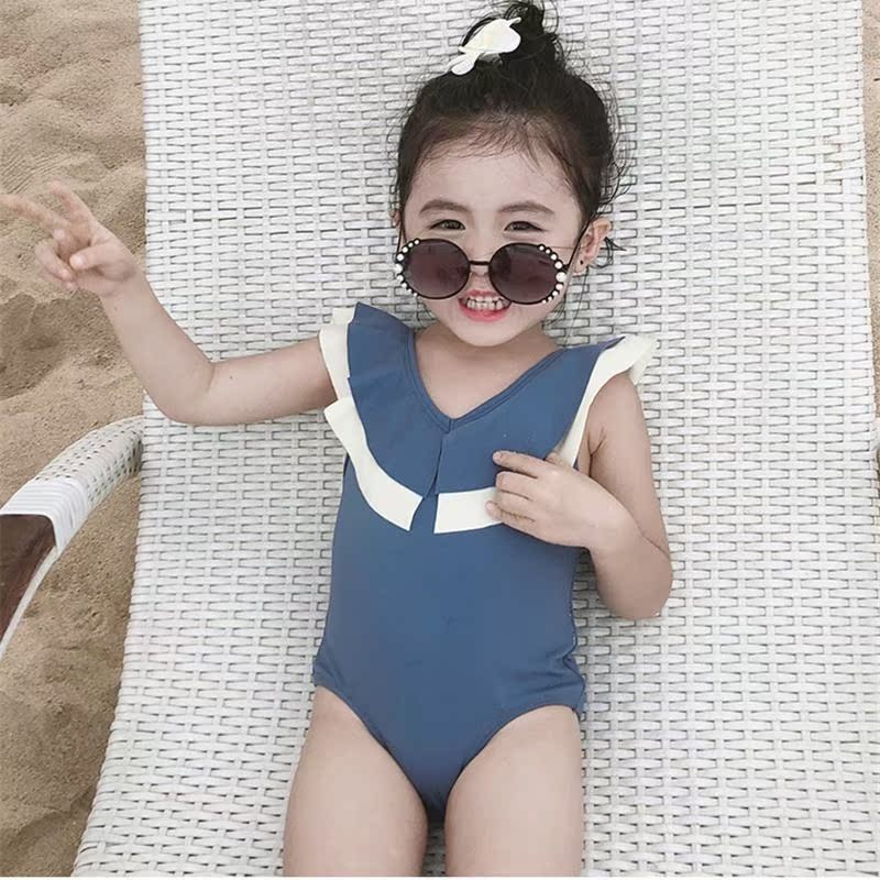 Children's swimsuit girl's summer fit 2021 new baby dew back Lido bikini princess wind lace swimsuit