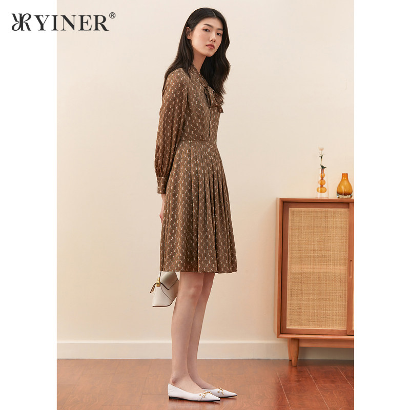 YINER soundtrack mall Same-style Spring Fashion Print Spell reception Waist Real Silk Shirt Polo Lian-Taobao