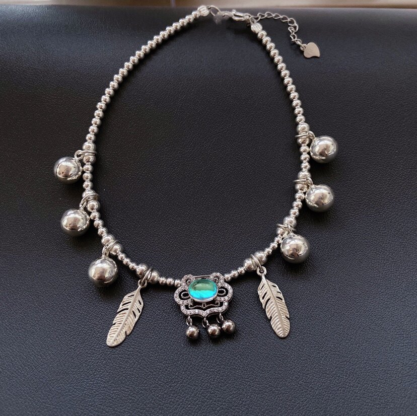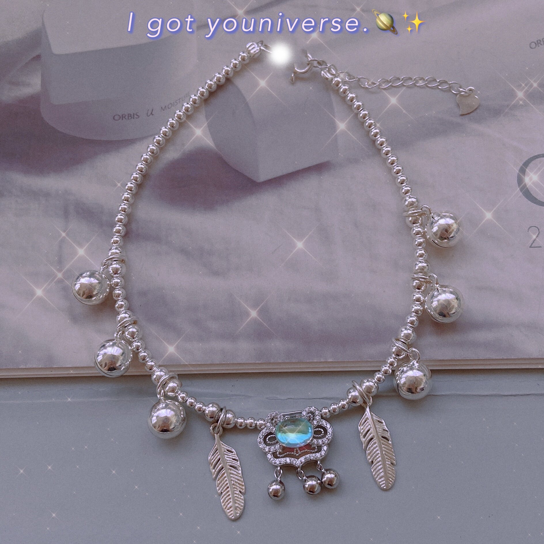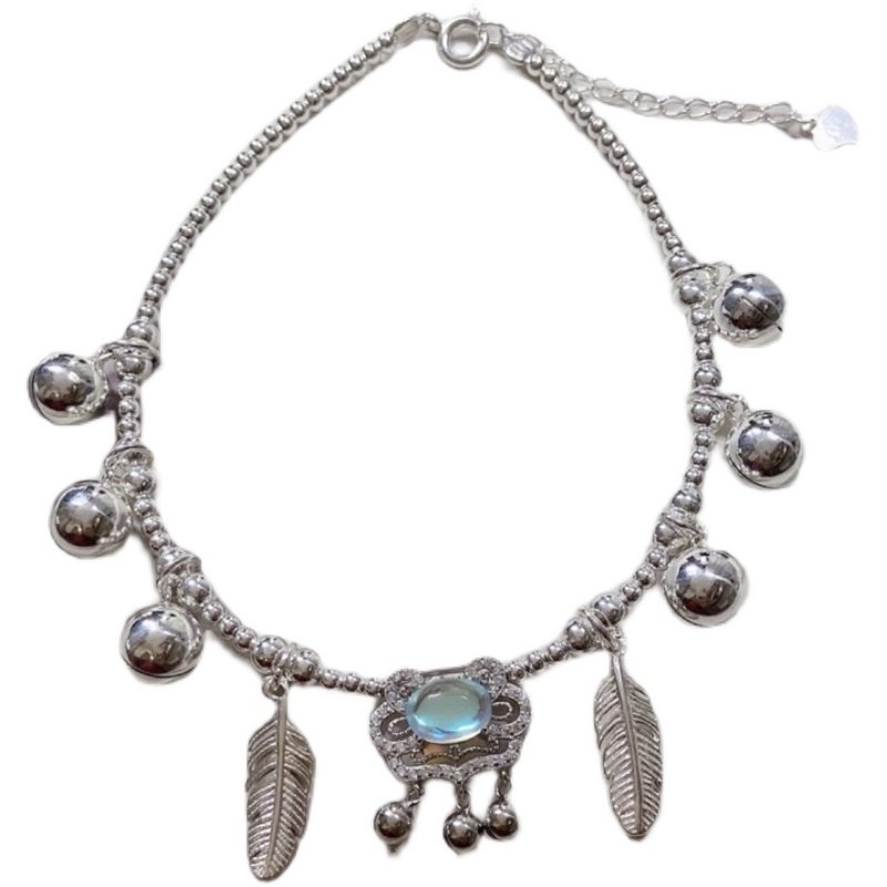 Superfairy light extravagant feather blue moon light safe lock 925 pure silver foot chain long life lock will ring the bell foot chain woman