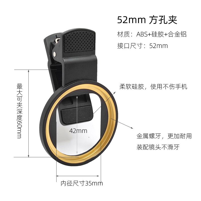 52mm mobile phone filter clip is suitable for Huawei Mate3040 Apple 12 promax Samsung General 52mm filter