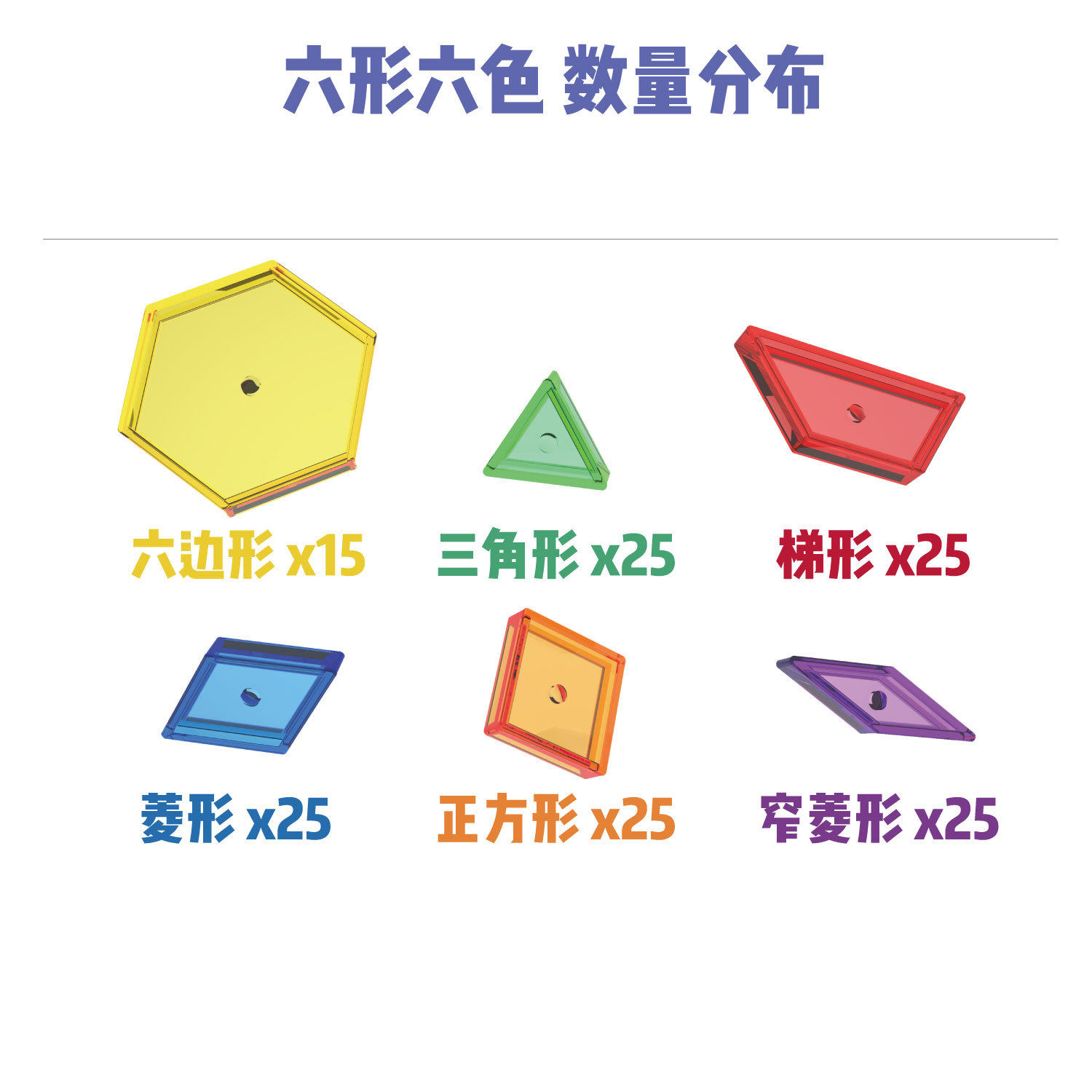 Six-shaped six-color, 140-piece set of pieces.
