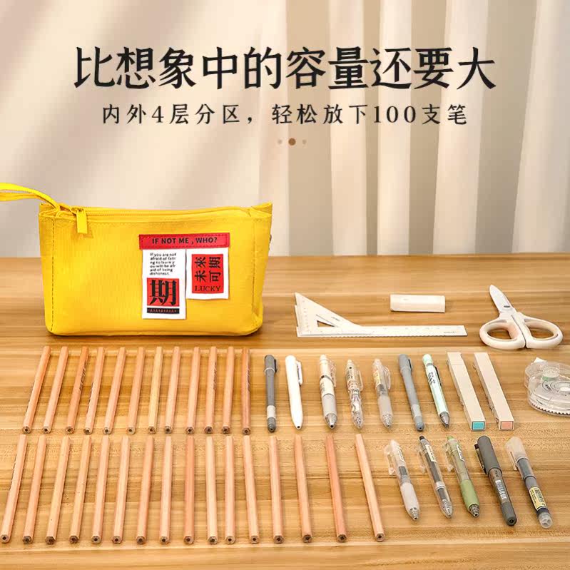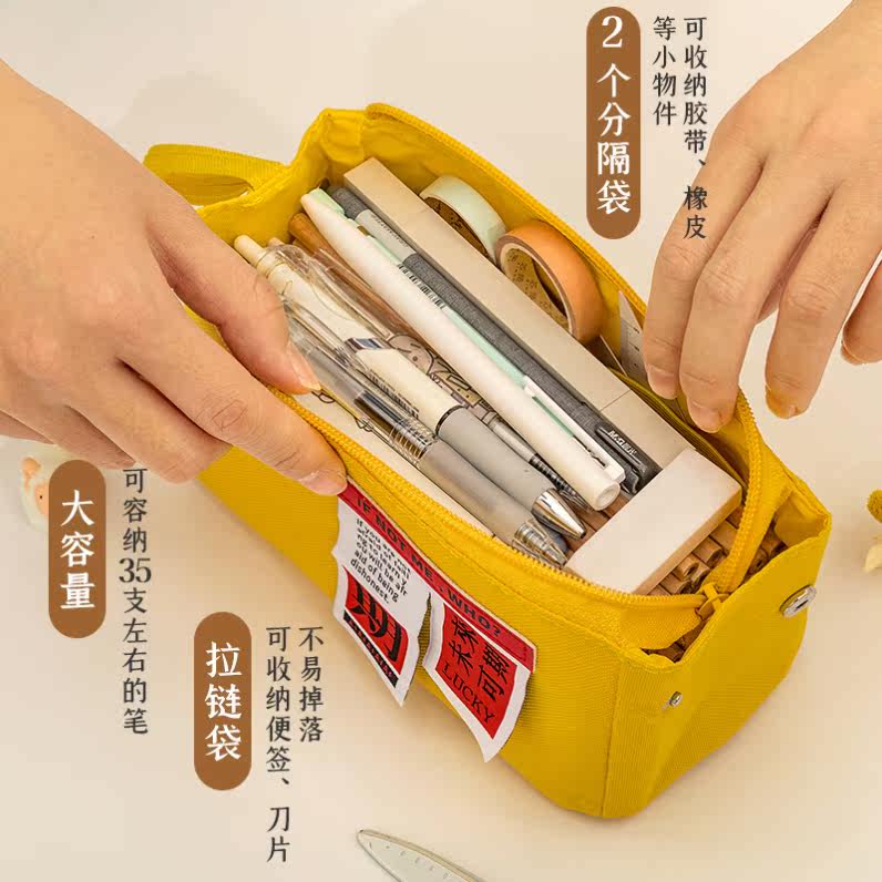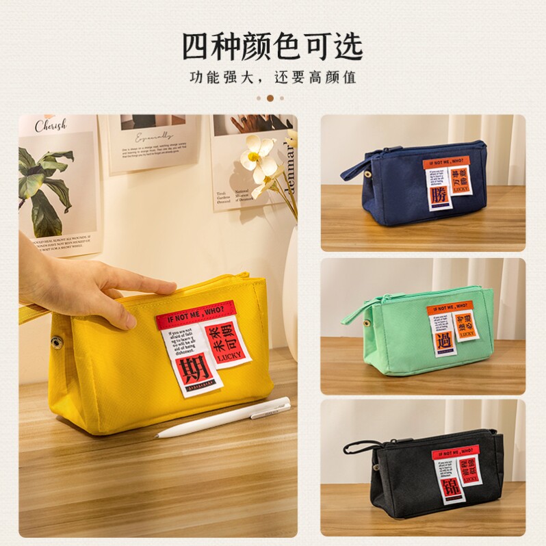 Pencil bags for primary school students, junior high school students, large-capacity pencil bags, female gift pens, three major gift bags, canvas for the first grade