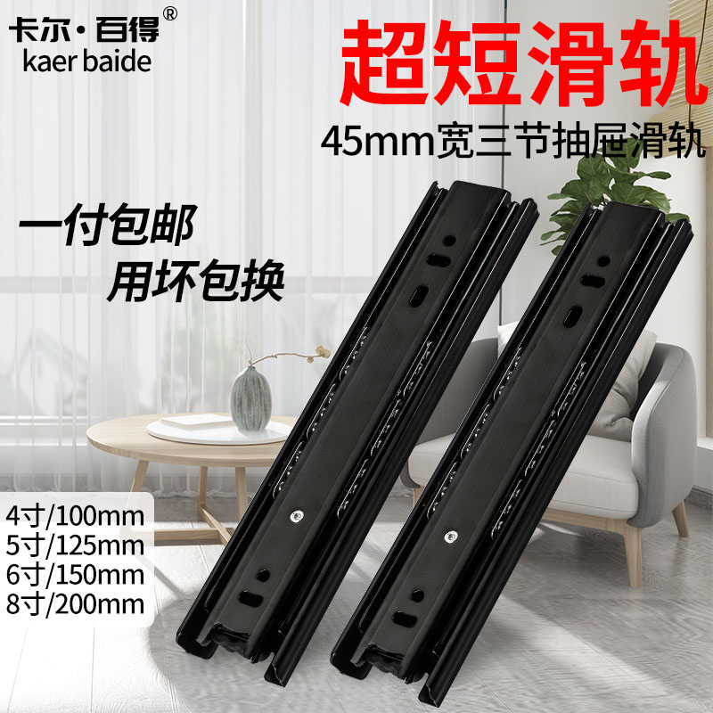 Short drawer track 150mm three-section ball guide rail overall cabinet 5 inches 6 inches 8 inches keyboard mute tri-fold small slide rail - Taobao