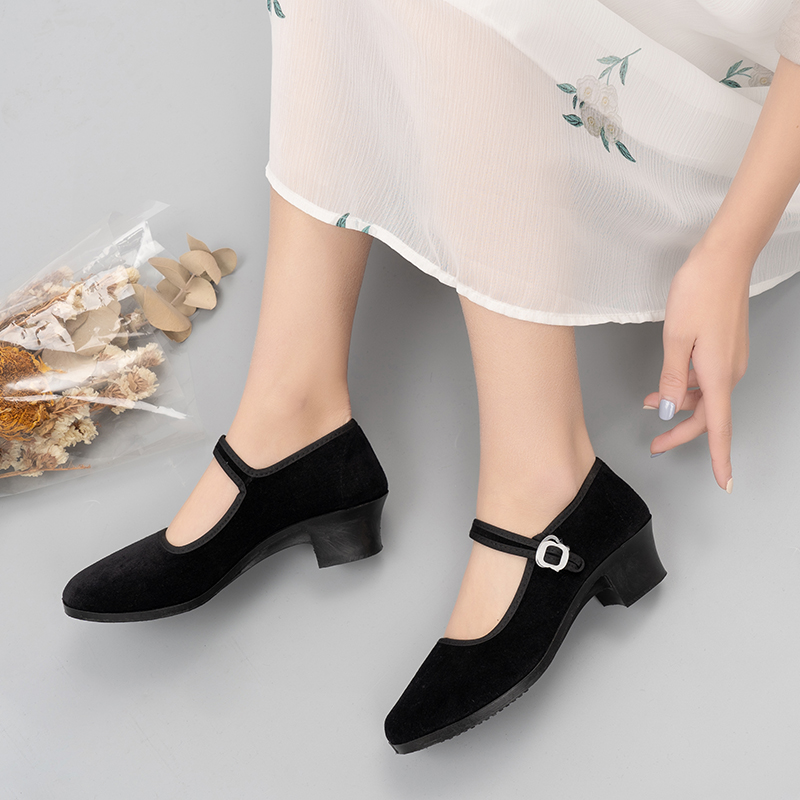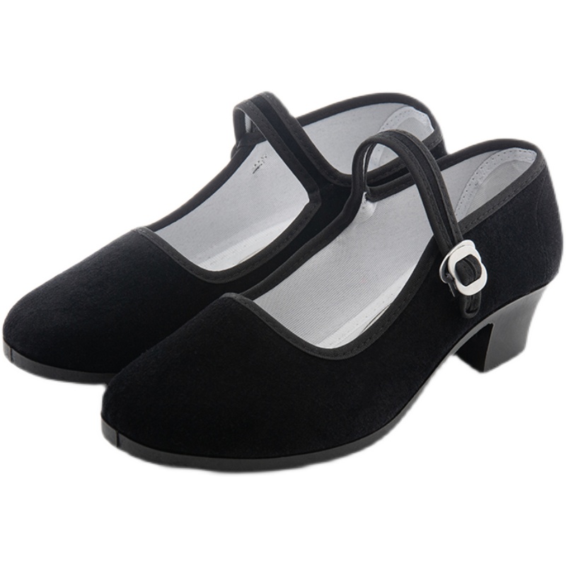 Dance shoes women's high-heeled folk dance Jiaozhou Yangko dance shoes cloth shoes velvet heels Tibetan dance examination black root shoes