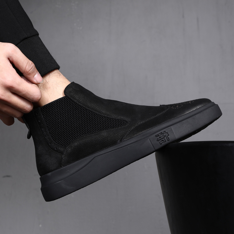 Spring Men Shoes Wave Shoes Han Edition High Cylinder Casual Leather Shoes Nets Red Martin boots Men's cotton shoes warm and suede leather shoes trendy