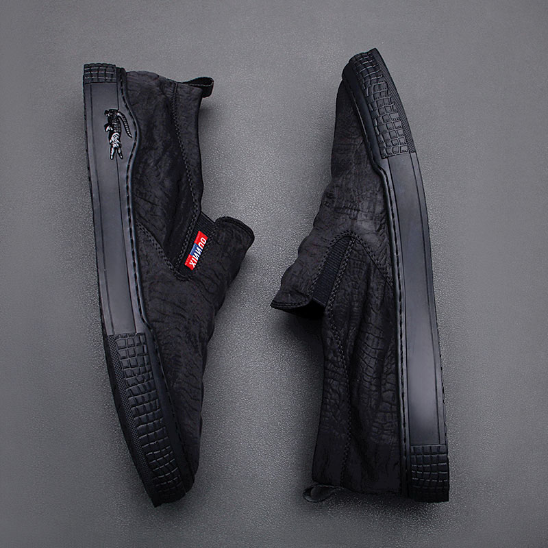 Summer slim Breathable Ice Silk Sails Cloth Shoes One Foot Pedal Personality Alligator Tattoo Low Helps Fisherman Shoes Old Beijing Men's Shoes