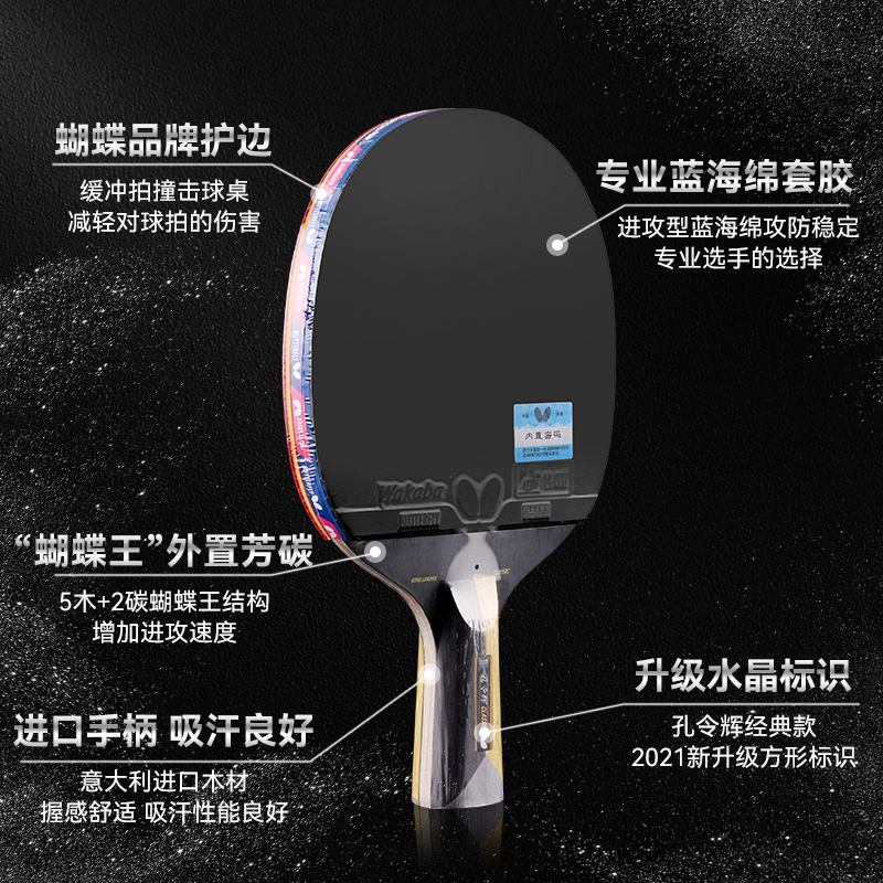 Butterfly table tennis racket single shot butterfly king Kong Linghui professional-grade finished racket carbon bottom plate gift box straight horizontal shot