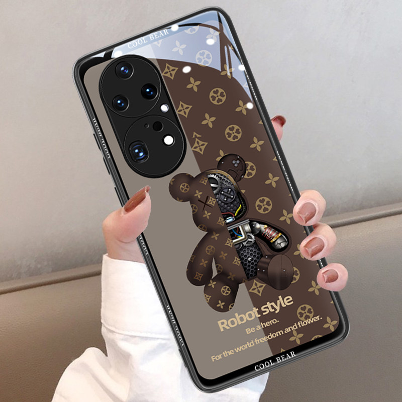 Tide-card bear suitable for Huawei p50pro mobile phone protection shell p40pro ten new p40 female mesh red p50 lens full package p30pro protective sheath pro retro wind p30
