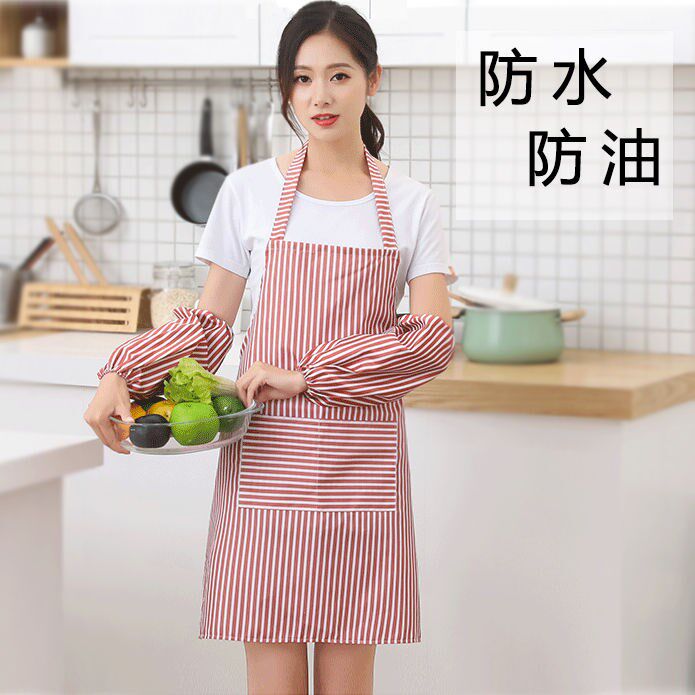 Apron women's kitchen apron coverall Korean fashion cute adult work clothes waterproof and oil-proof waist sleeve set