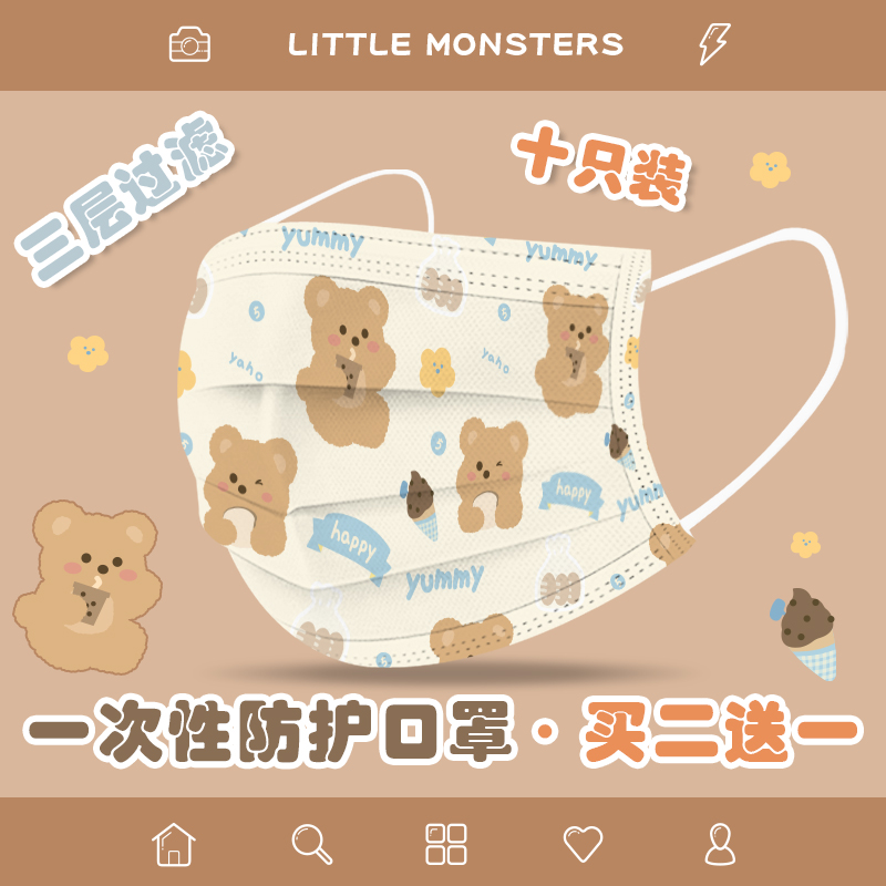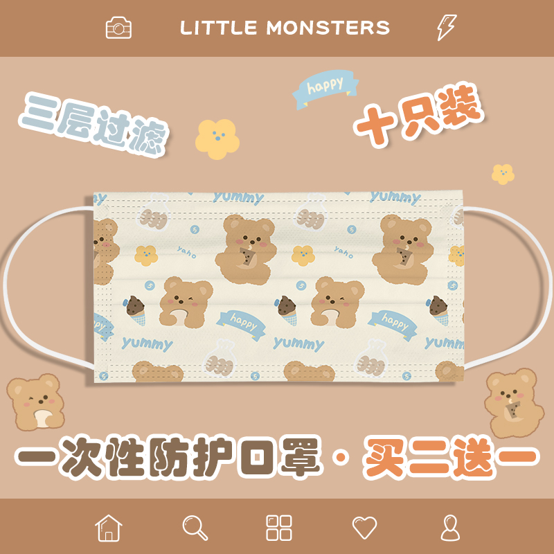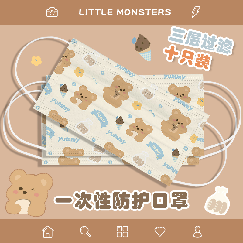 Milk Tea Bear Mask Woman Sunscredible Disposable Mask Printing Creative Pattern