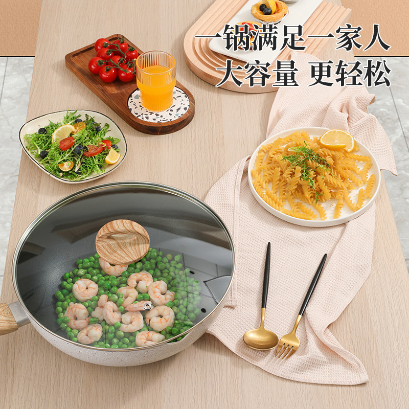 Medical stone frying pan non-stick pan frying pan Home flat bottom pan gas stove induction stove special without a frying pan smoke-free-Taobao