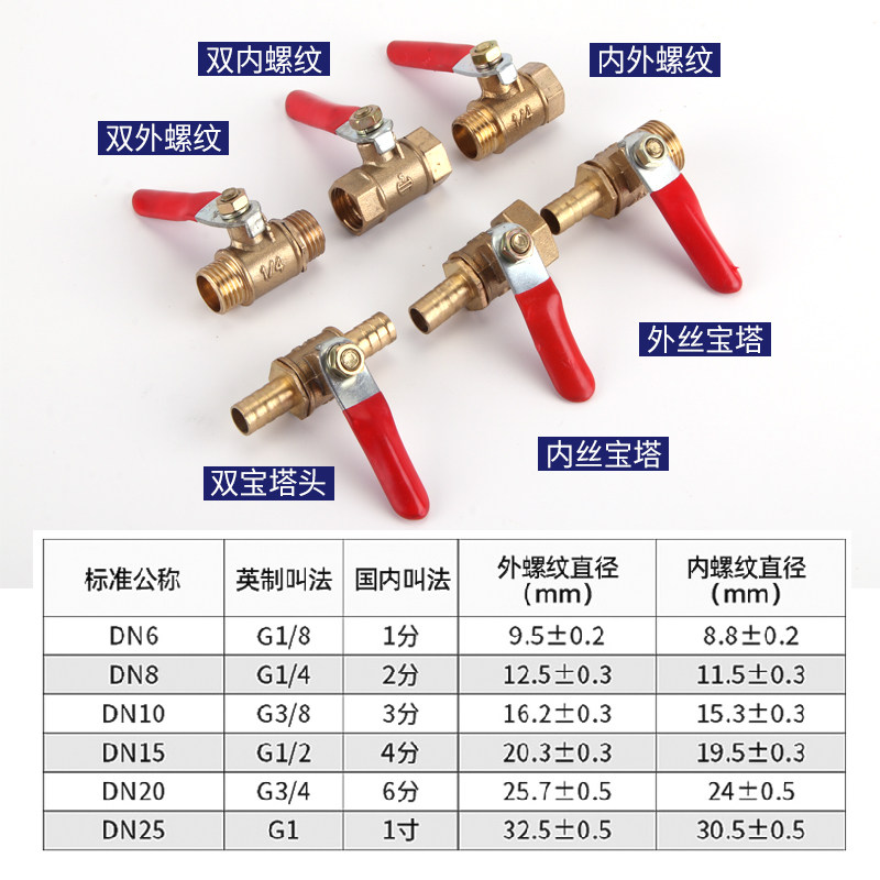 Red Handle Small Brass Pagoda Full Copper Air Hose Air Pressure Machine Ball Valve Water Switch Double External Wire 1 1 2