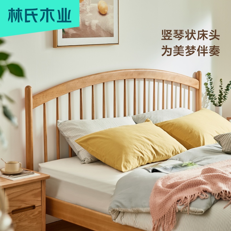 Lin wood Nordic style solid wood bed shelf 1.5m double bed 1.8m large bed master bedroom furniture LS155
