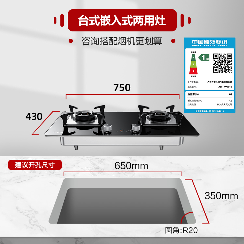 Macro van Caravan KV261B Home timed gas stove Gas Gas Liquefied Gas Embedded Double Mouth Gas Stove