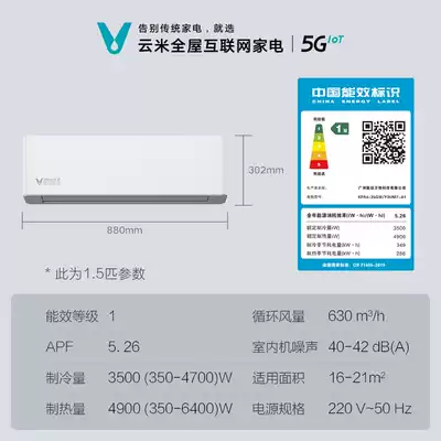 Yunmi variable frequency cooling and heating large 1 Horse 1 5 horse sterilization Wall Wall air conditioner large 3 horse vertical cabinet living room household New Class 1 air conditioner