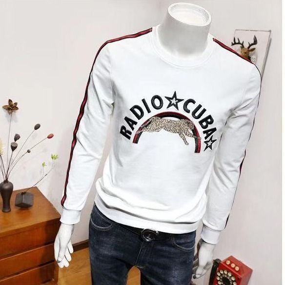 2022 New men's long sleeves Nets for autumn and winter style with velvety striped embroidery trending in white T-shirt