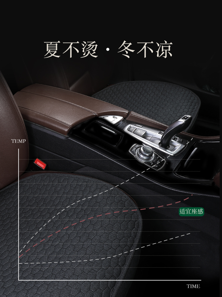 Car seat cushion without backrest linen three-piece single summer cushion four seasons universal breathable half pack? yi dian tao