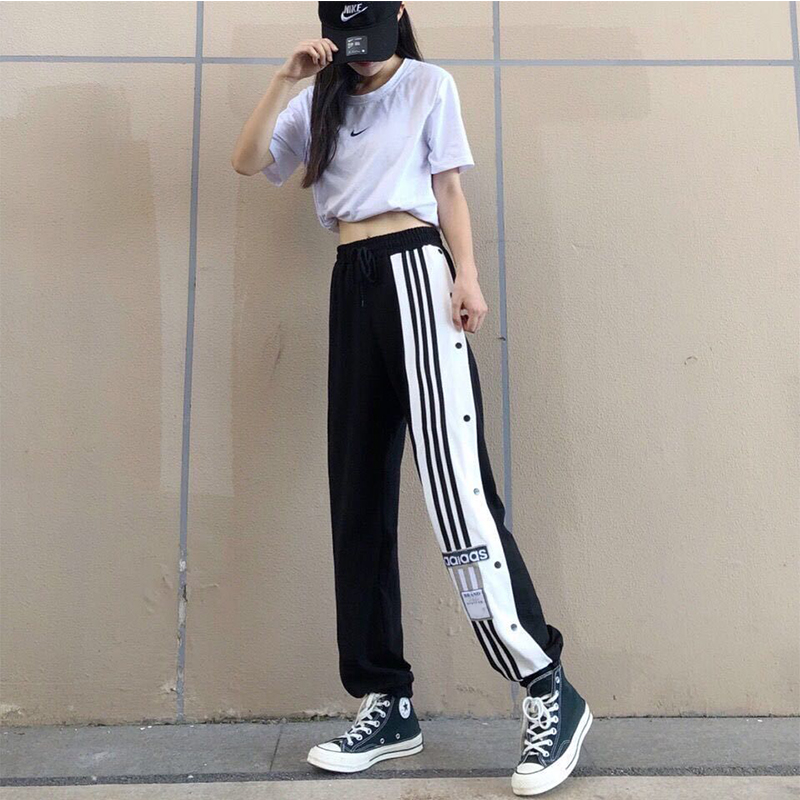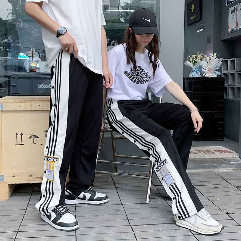 Breasted pants female ins trendy leg full open buckle second off large size high street wide leg cba basketball appearance trousers American men