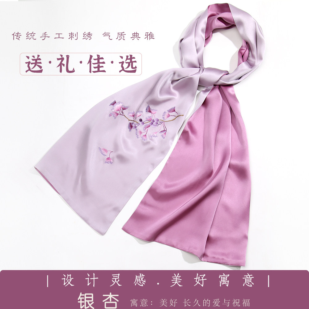 Chengdu Shu Embroidery Handmade Embroidered Gingko Silk Scarf National Wind Cape and Shoulder Qipao are matched with sending mother to meet with mother-in-law