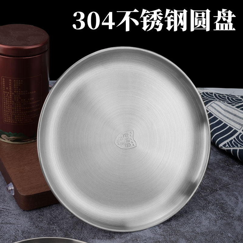 Korean stainless steel disc barbecue flat plate cafe tray fruit plate restaurant bone plate dish plate dessert plate