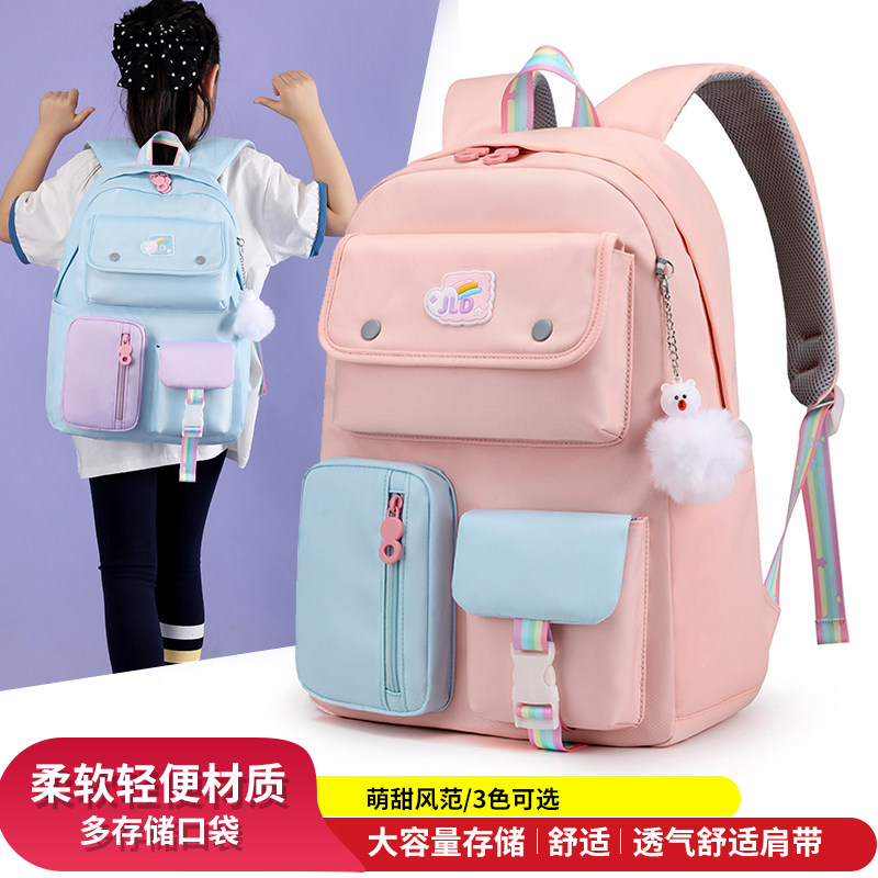 New school bag girls 1-3 - 6 grades Princess powder girls light children to reduce the shoulder bag 5