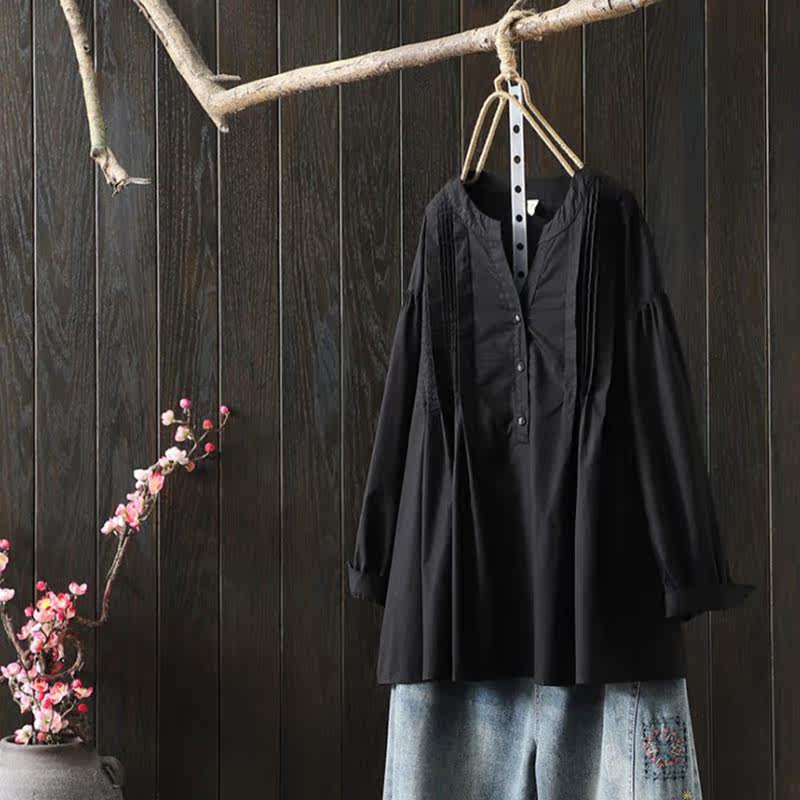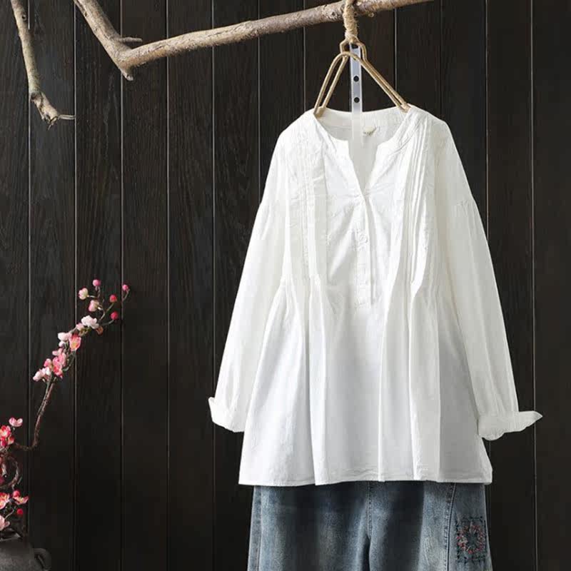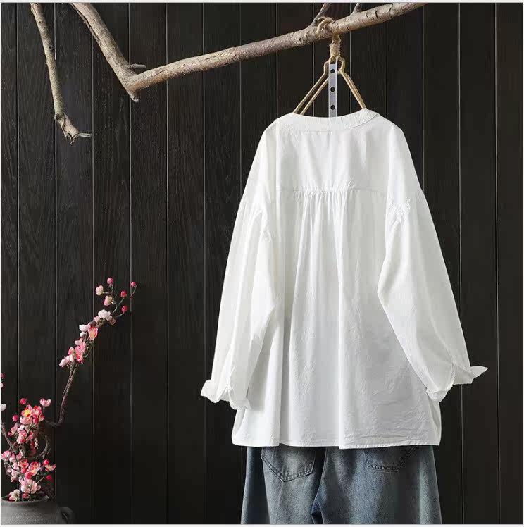 2022 pregnant women autumn clothing new loose casual shirt V collar pure cotton long sleeve art shirt outwear jacket spring and autumn