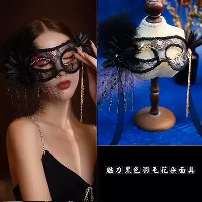 Charm black feather flower blooming mask