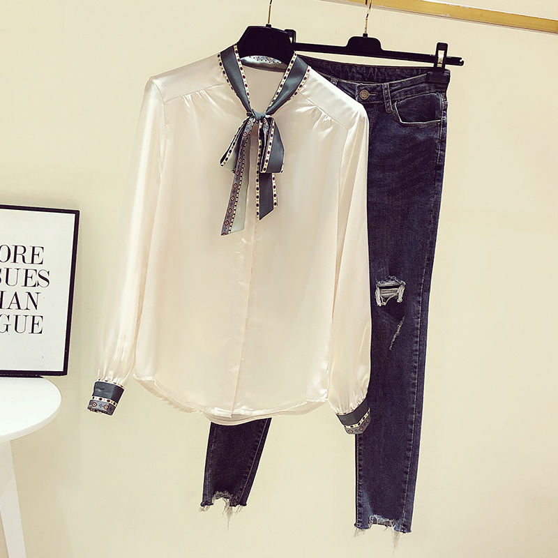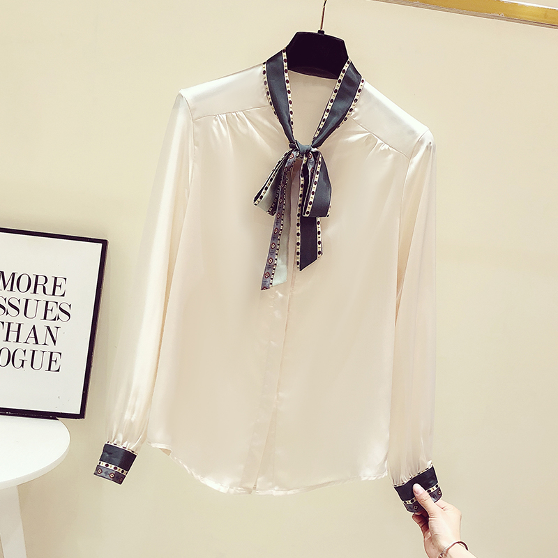 Snowspun Long Sleeve Shirt Autumn Dress 2022 New Female Han Version Loose Design Sensation Small Crowdbow Tie Foreign Pie