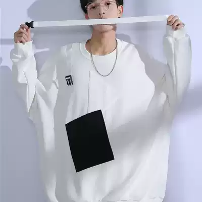 Sweater men without hat design sense niche patch original trend jacket casual loose Korean version round neck top