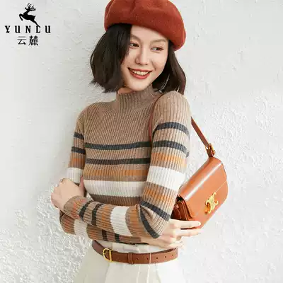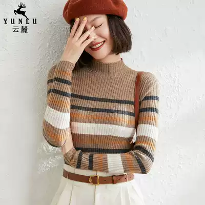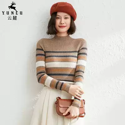 Half high neck cashmere sweater women 2021 autumn and winter New slim thin thick pullover striped sweater knitted base shirt
